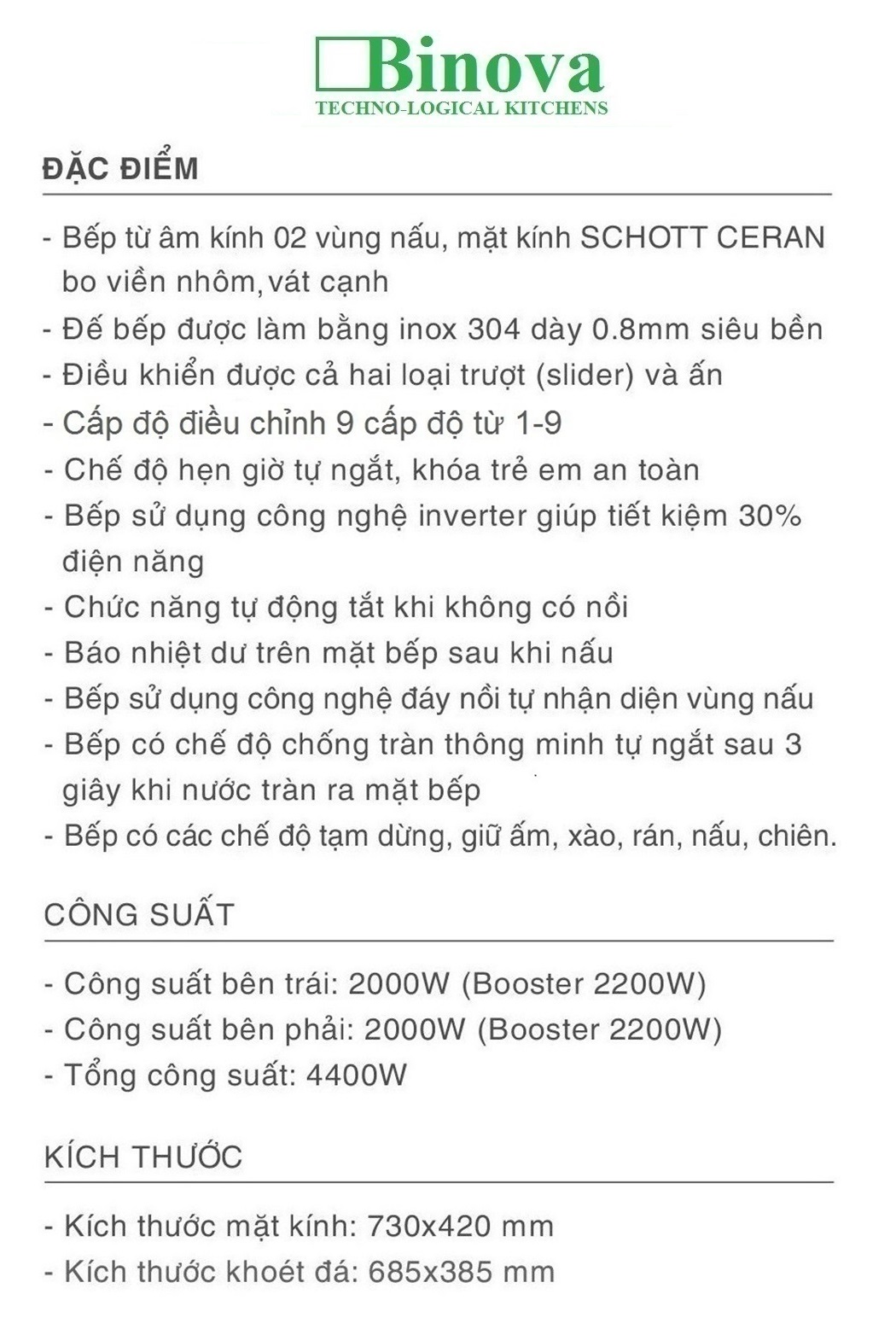 Bếp từ vuông 3 vùng nấu Binova model: BI-5588-ID