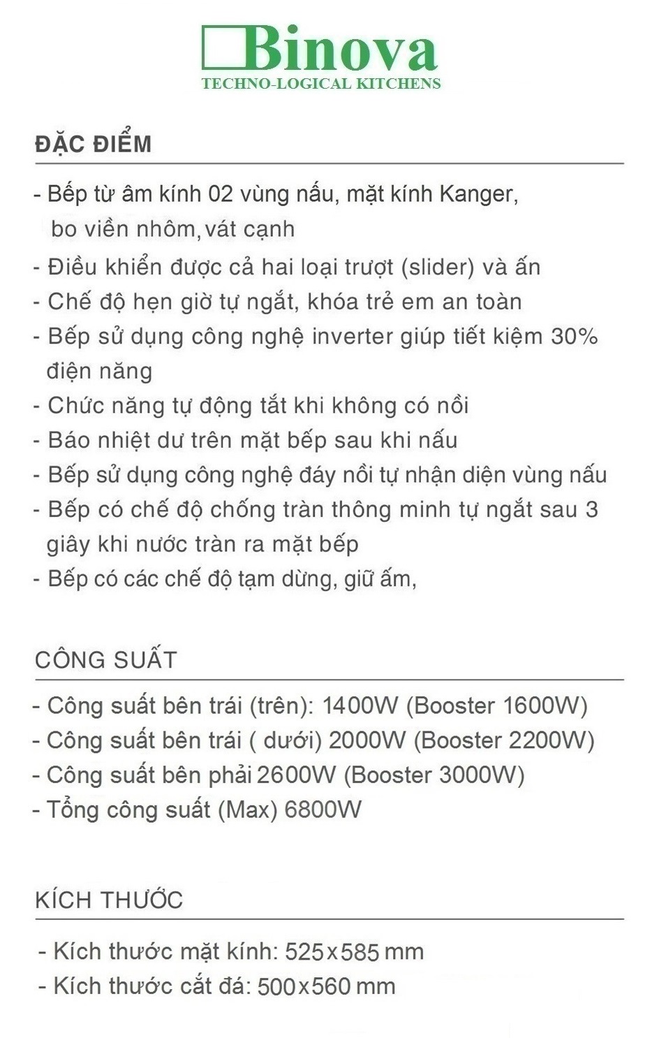 Bếp từ vuông 3 vùng nấu Binova model: BI-5588-ID