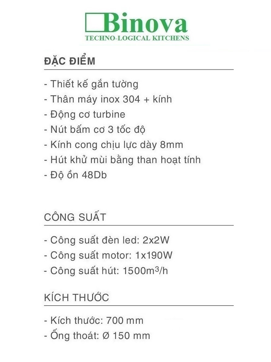 Hút mùi kinh cong Binova model: BI-6688-ISO-07/09