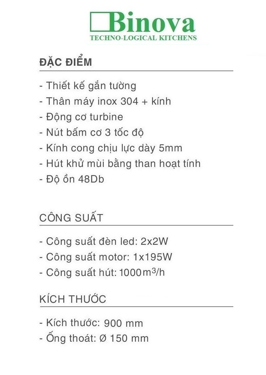 Hút mùi kinh cong Binova model: BI-6688-ISO-07/09