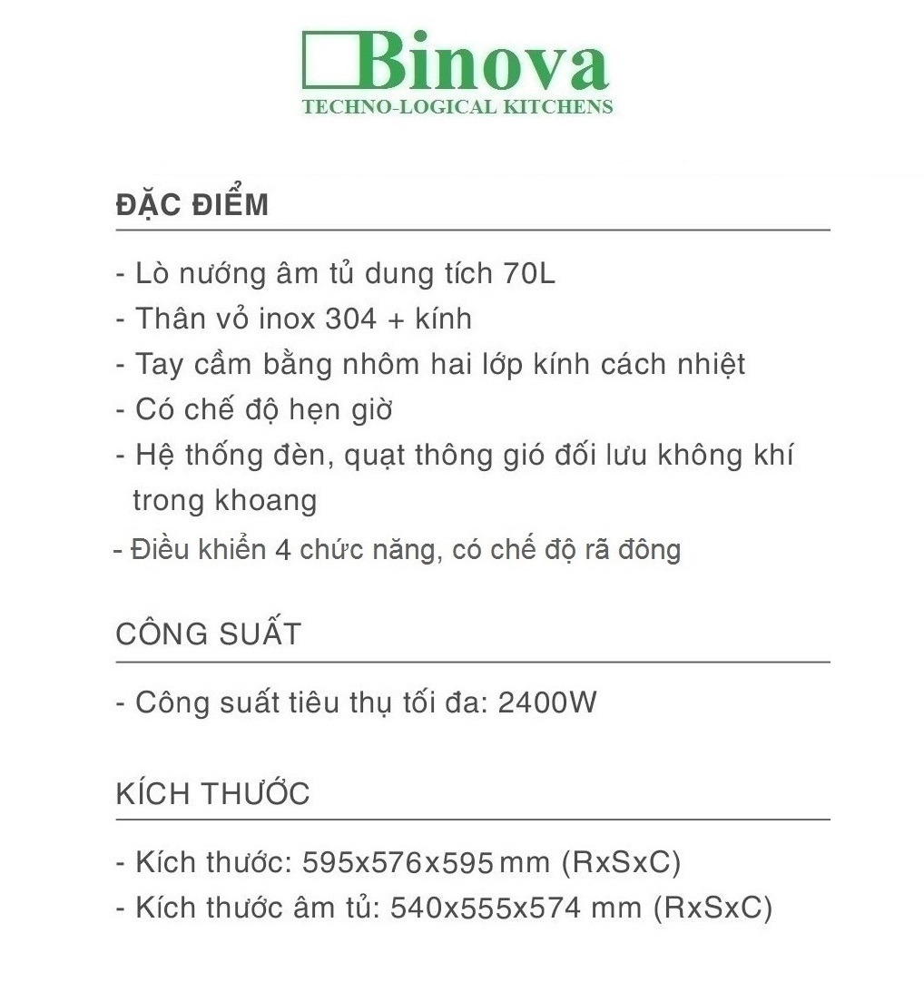 Lò nướng âm tủ Binova model BI-555V-BL