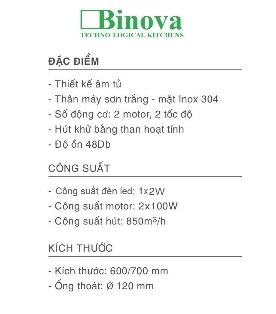 Hút mùi âm tủ Binova model: BI-28-W-06/07