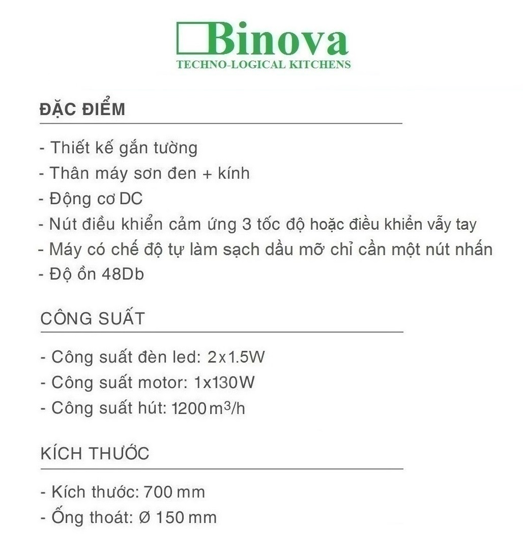 Hút mùi kinh cong Binova model: BI-6688-ISO-07/09