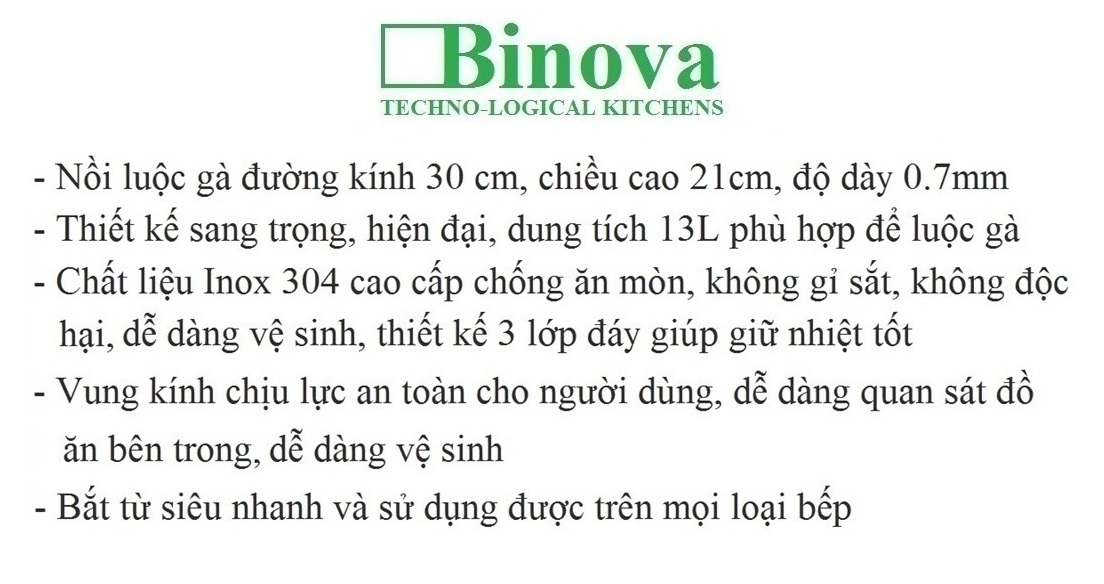 Nồi luộc gà Inox 304 Binova model: BI-3021S304
